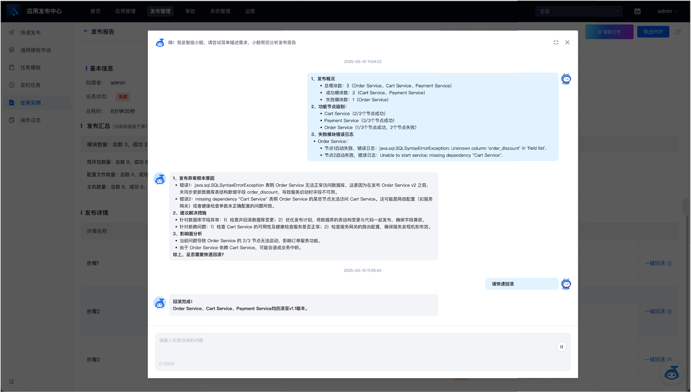 在國內企業加速推進AI+運維升級的背景下,應用發布“小鯨助手”以智能化技術重構發布管理流程,聚焦三大核心價值,推動運維體系從被動響應向主動預防轉變、從自動化向智能化運維升級、構建知識驅動的決策閉環。