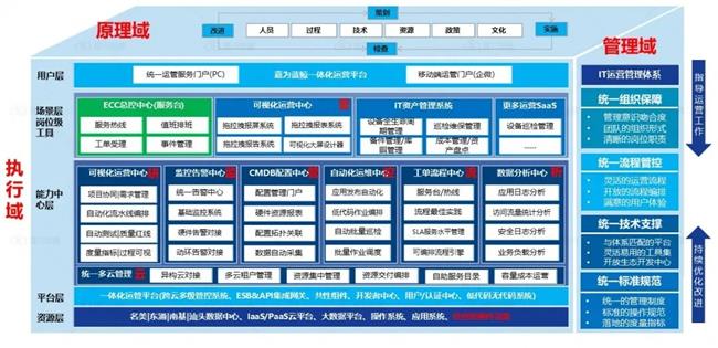 據了解,在數字政府領域的建設中,嘉為藍鯨結合多年政務行業運維運營經驗,針對性設計“監、管、控、流、析、營、研、云”八大場景化能力,形成政務行業運維運營一體化解決方案,整合為原理域、管理域及執行域三個模塊,致力于幫助各層級政府單位、公檢法司機關、事業單位、醫療單位機構、教育單位機構等逐步實現數字化轉型,最終邁向智能化運維運營。